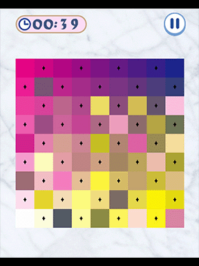 盤面のカラータイルを、ヒントタイルをもとにグラデ―ジョンになるように並べ替えるパズルゲームです。