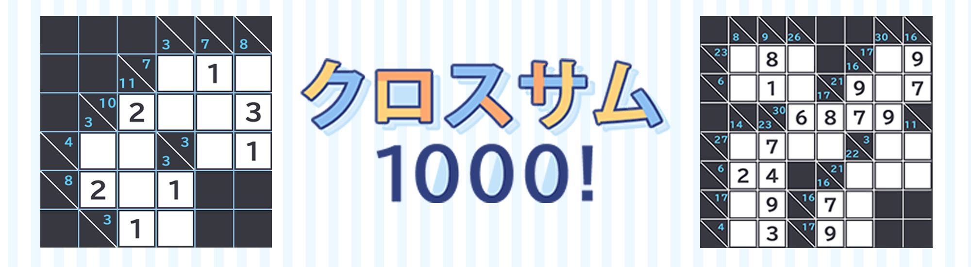 斜めに仕切られたマスにある数字をヒントに正解の数字を探る「クロスサム 1000!」。