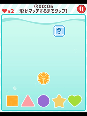 落ちてくるボックスをタップして、画面下の図形やフルーツとマッチさせるゲームです。