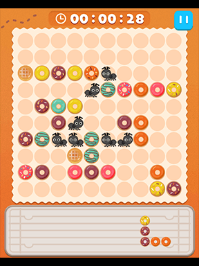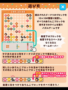 いろいろな形のドーナツブロックを使って列を作り、盤面のありをすべて消そう