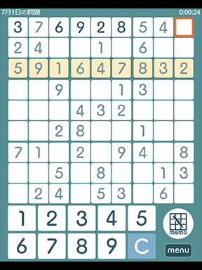 問題が毎日入れ替わるので、一日一問ナンプレにチャレンジ!
